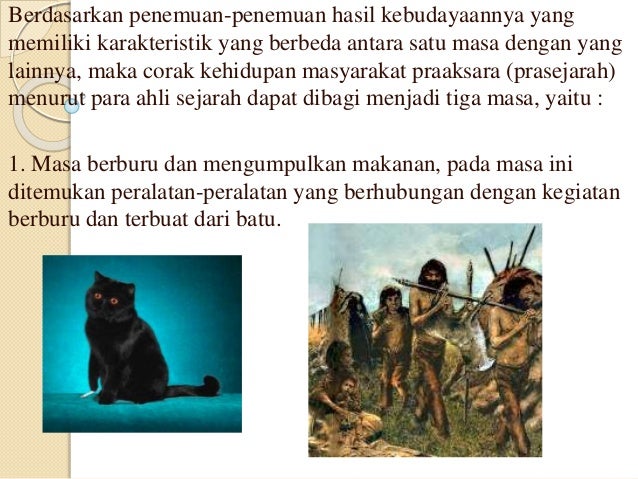 Kucing adalah corak kehidupan manusia praaksara yang artinya. Pada masyarakat food gathering mereka sangat menggantungkan diri pada alam. Alam yang dipakai untuk bercocok tanam adalah hutan-hutan. Zaman pra-aksara adalah masa dimana tidak ditemukannya tulisan.