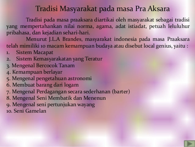 Masyarakat praaksara hidup secara nomaden. Menurut KI HAJAR DEWANTARA merumuskan kebudayaan sebagai semua hasil ciptakarya dan karsa perasaan atau karakter manusia CLYDE KLUK CHOCN menambahkan kebudayaan itu memiliki tujuh unsur yang sifat nya Universal kebudayaan tersebut yang dimaksud adalah. Masa Pra aksara adalah masa dimana belum ditemukannya tulisan.