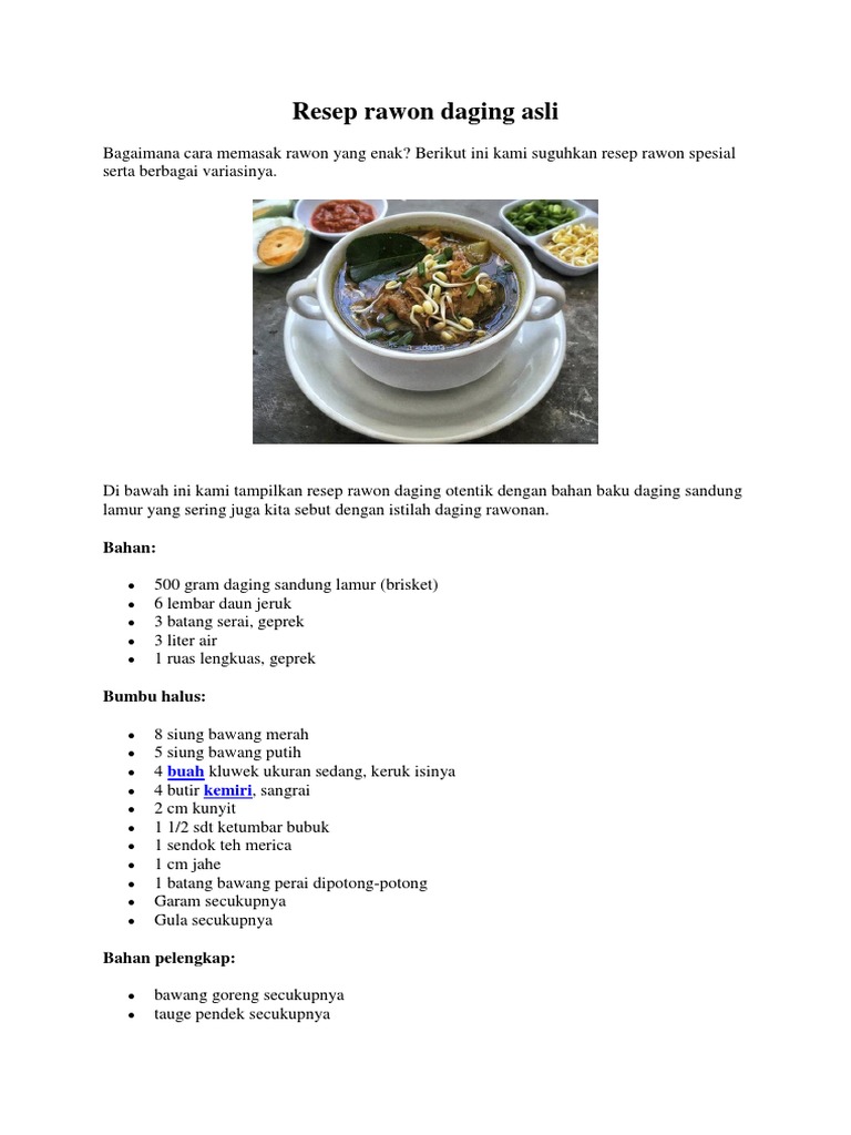 Sarapan A la Indonesia Coba juga. 400 g daging rawonsandung lamur. Resep Rawon Setan Resep Soto Kudus.